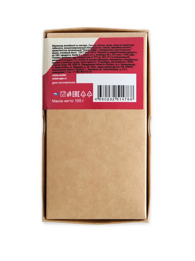 Патока, сахар, отвар из лепестков гибискуса, концентрированный яблочный сок, пектин, лимонная кислота, ароматизатор натуральный «Лимон-Лайм», глазирователь (растительное масло, пчелиный воск)